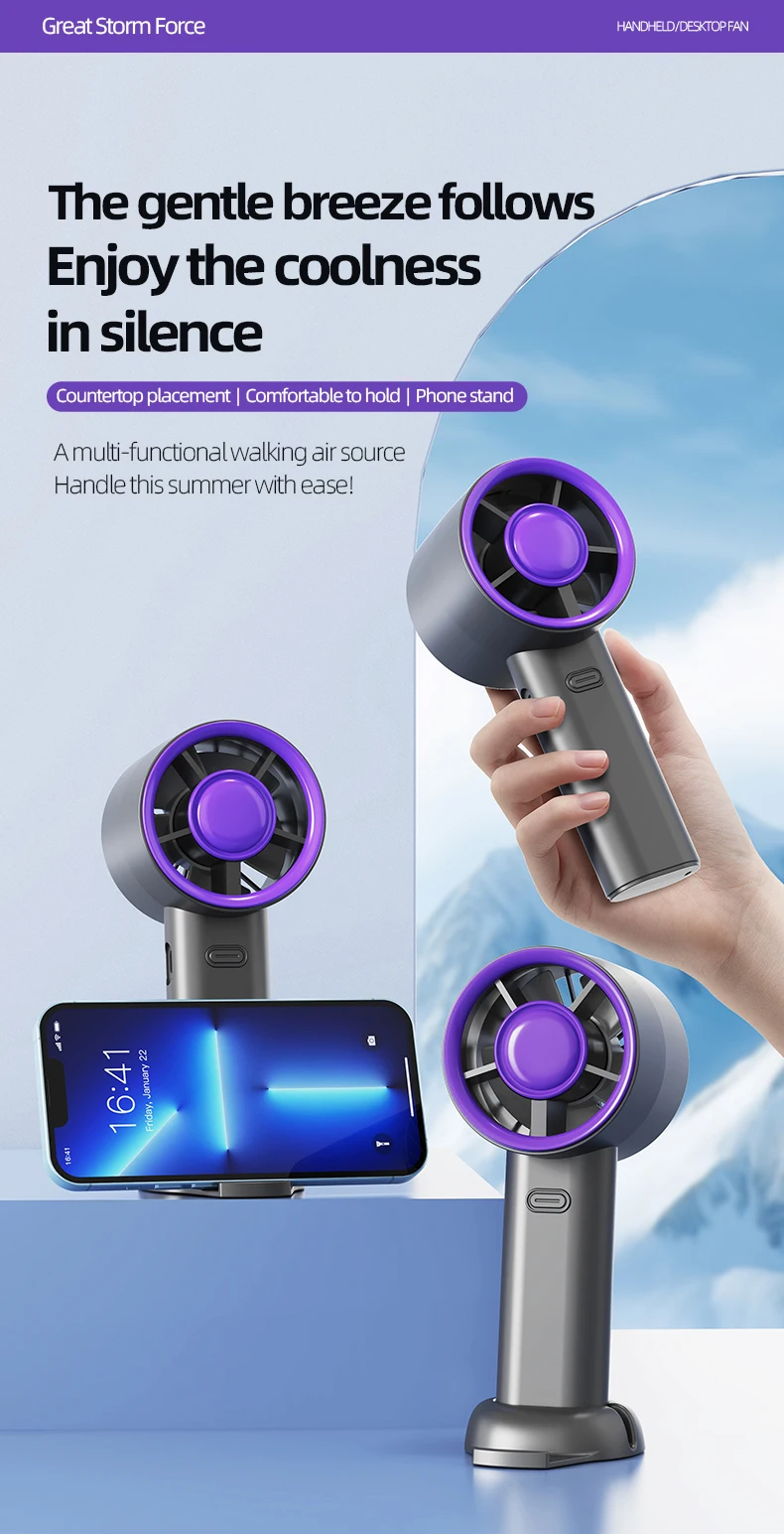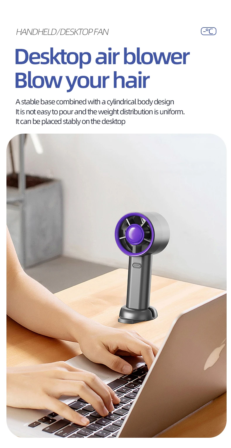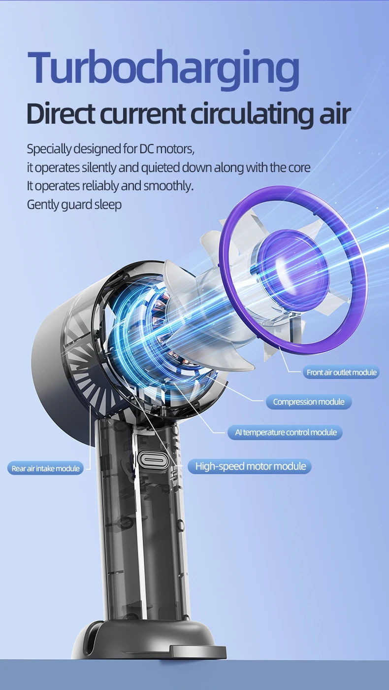 Portable Handheld Fan Mini Personal Highspeed Fan for Travel Outdoor Activities USB Fast Charging Mute Air Calculating Fan